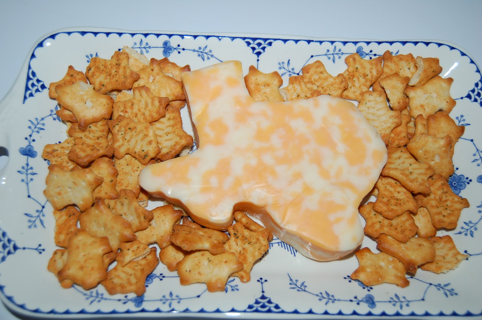 | Cheese and crackers in the shape of Texas. |